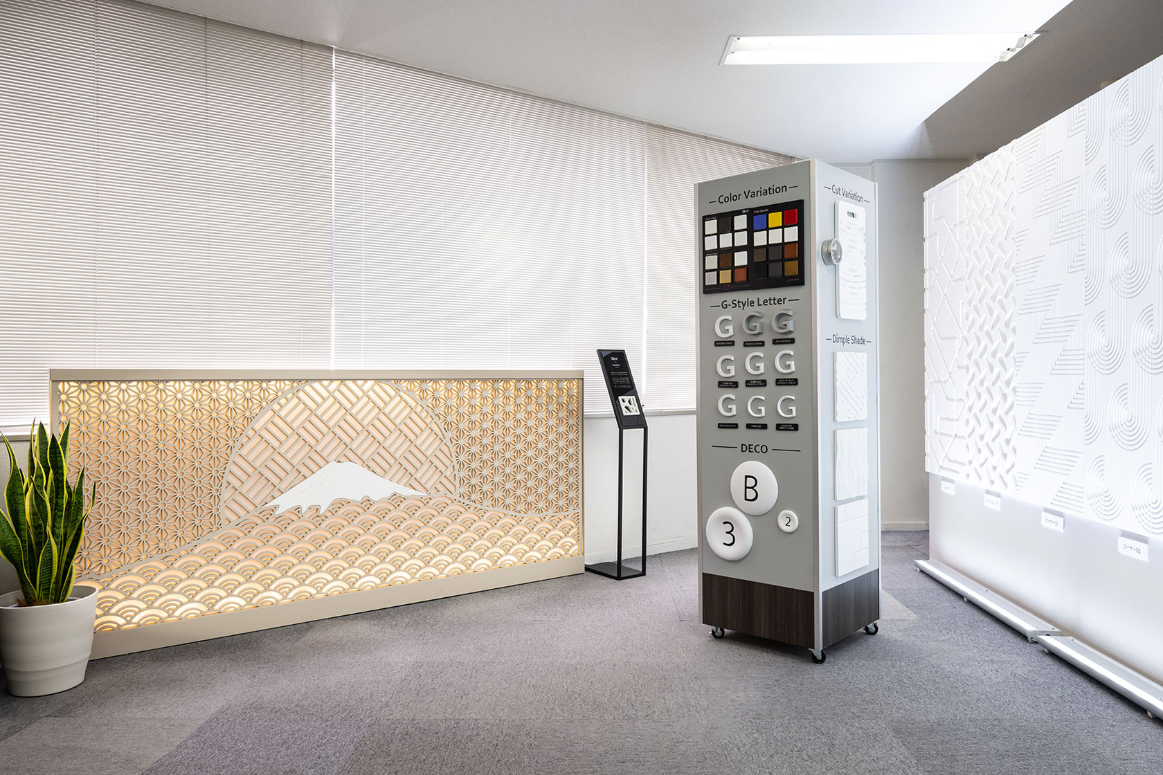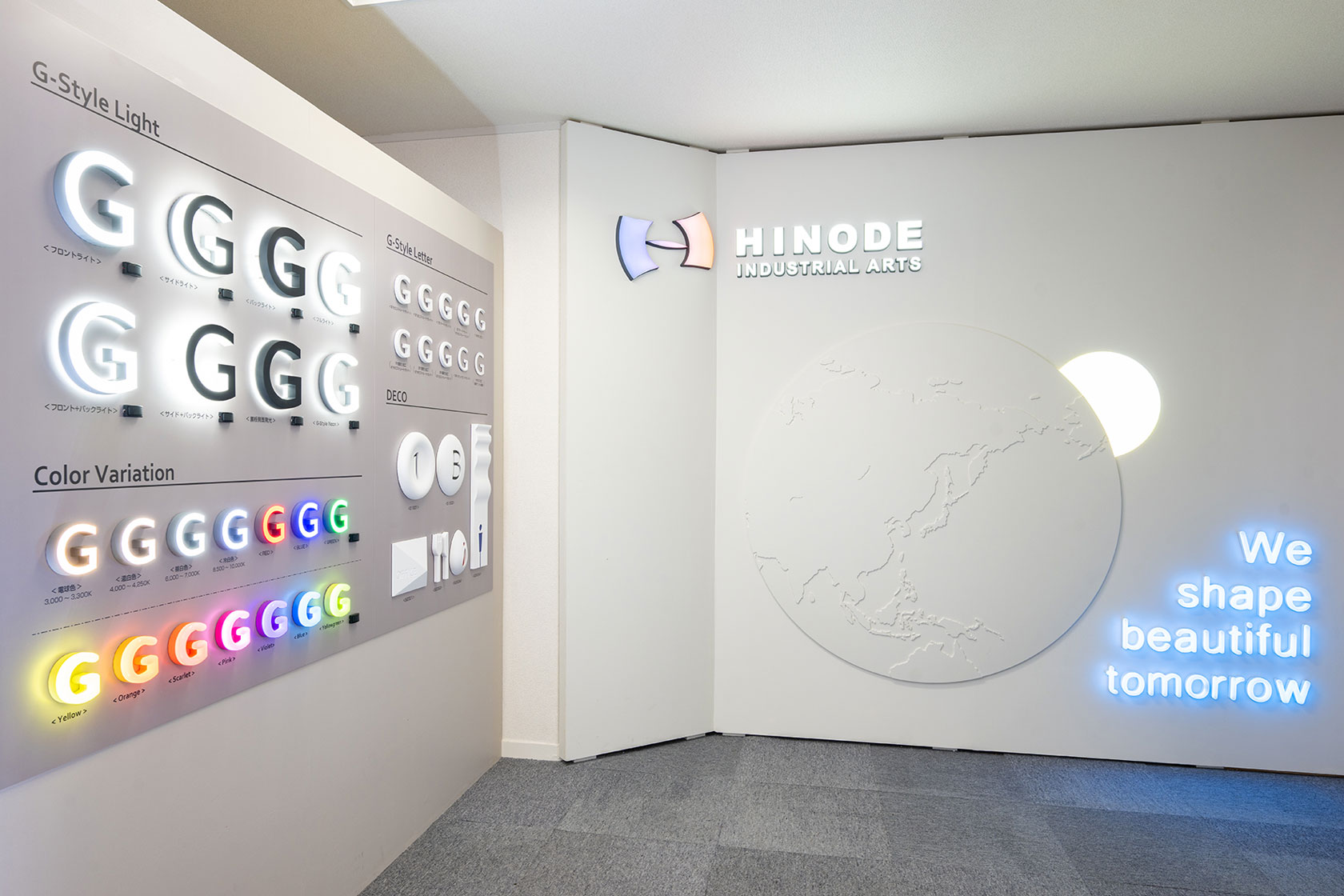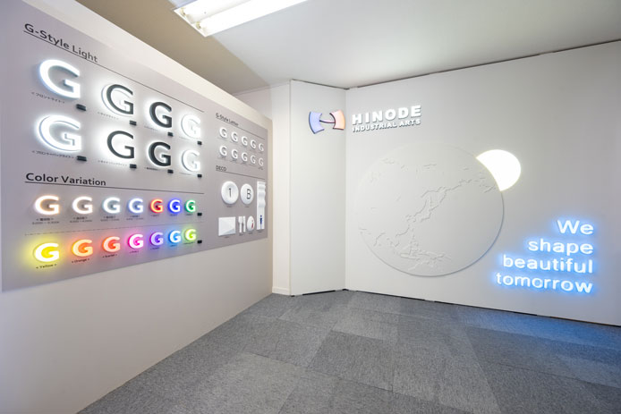 今や、サインのみならず、不燃材に特化した内装用デザインパネル、立体造形を含む建築装飾資材の企画、デザイン、設計から製作までを担うトータルメーカーへと進化しました。