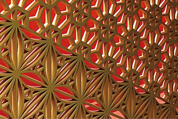 RANMAは、日本の建築様式 欄間の要素(採光、通風、装飾)を持つ、組子・格子などの表現に最適な不燃の内装用デザインパネルです。