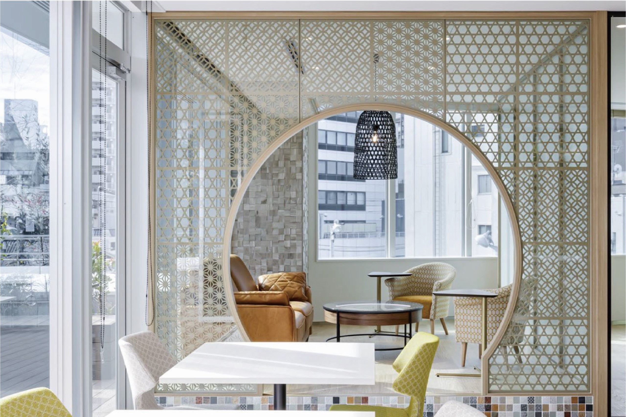 EPSホールディングス株式会社様敷地内「筑土テラス CAFÉ & BAR」に、透かし彫りデザインパネル RANMA を納入させていただきました。